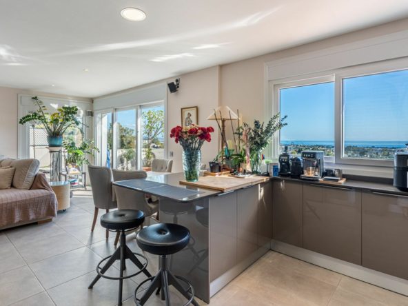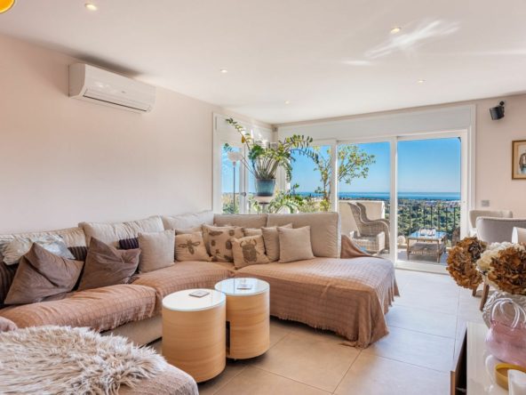 Renovated two-bedroom penthouse with breathtaking panoramic sea views in Las Terrazas de Los Almendros, Benahavís. Ideally located in a peaceful setting just minutes from San Pedro and Puerto Banús, with easy access to amenities in Los Halcones.