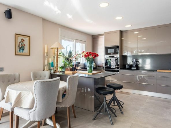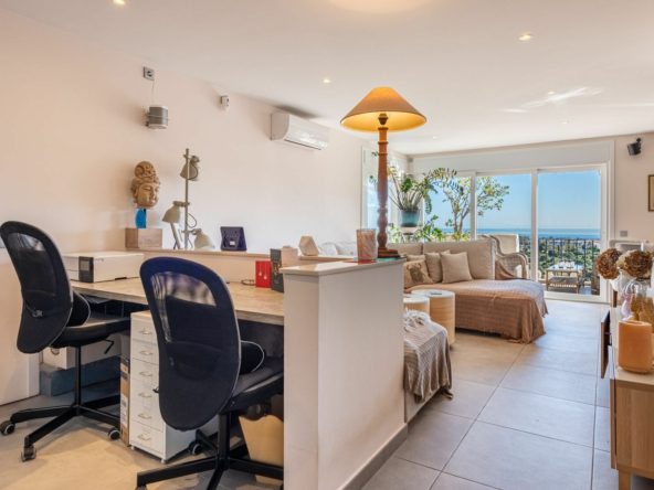 The master bedroom features an en-suite bathroom and private terrace, while the guest bedroom also has its own terrace, ensuring comfort and privacy. A standout feature is the three independent terraces, all offering stunning sea views and sun throughout the day—perfect for outdoor living and entertaining.