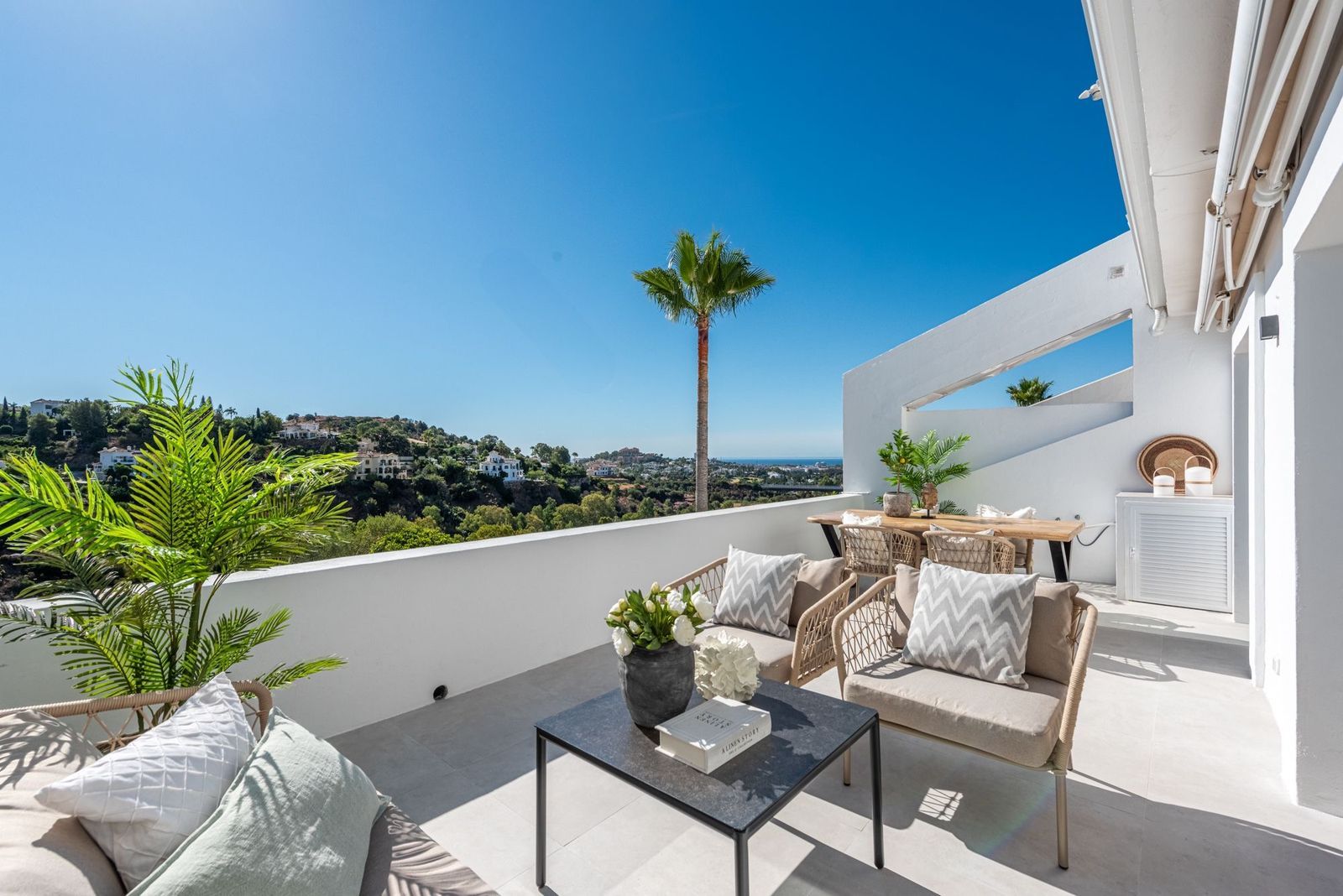 Welcome to this stunning, newly renovated middle floor apartment in the prestigious El Mirador 2, La Quinta, Benahavis. It features a 100 sqm living area, a spacious terrace with breathtaking mountain and sea views, 3 bedrooms, and 2 bathrooms. The bright living room opens onto the terrace, perfect for relaxation and entertaining. The master bedroom includes an en-suite bathroom and terrace access, providing a private, tranquil atmosphere.