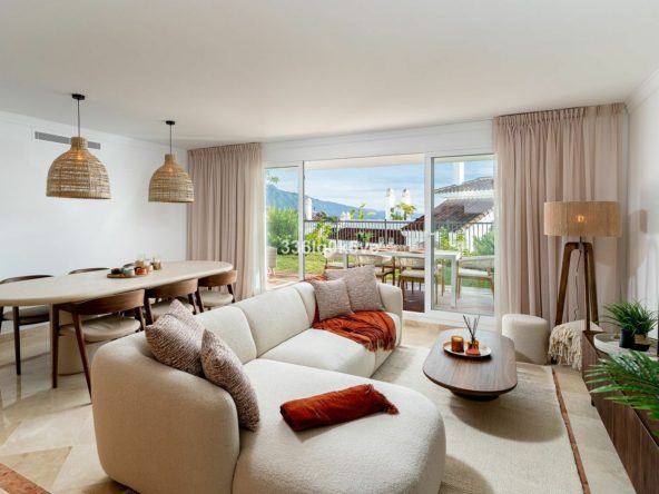 Located in the charming and modern Paraiso Pueblo urbanisation in Benahavís, we present this spacious ground-floor apartment with 3 bedrooms and 2 bathrooms. The property offers both a front and rear terrace, allowing you to enjoy the sun at any time of the day, while also benefiting from beautiful mountain views. It is set in a quiet location within the complex, perfect for those seeking privacy and relaxation.
