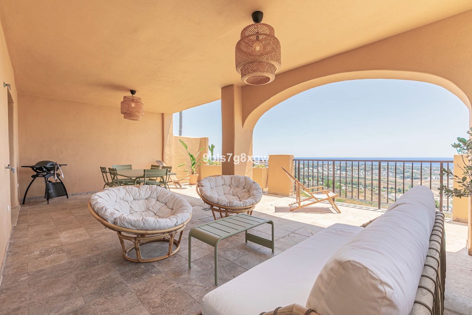 Outside, a spacious 44m² South-facing terrace, partially covered (to be enjoyed in all seasons), offers panoramic views of the Mediterranean Sea, Marbella, the golf courses and, on clear days, even the African coastline. Inside, these stunning views are visible from the moment you enter, in every living space and even in the master suite.