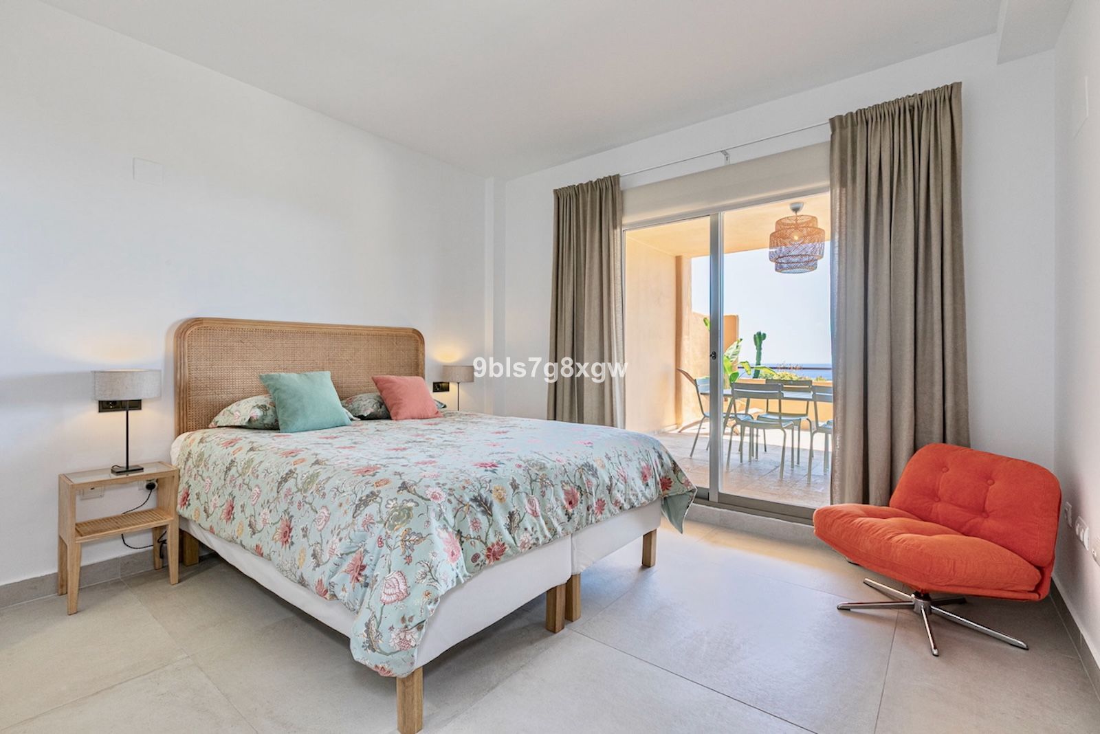The master suite, which opens directly onto the terrace, includes a walk-in closet and a modern microcement bathroom. The second bedroom, ideal for guests or children, features built-in wardrobes and a bathroom also finished in microcement.