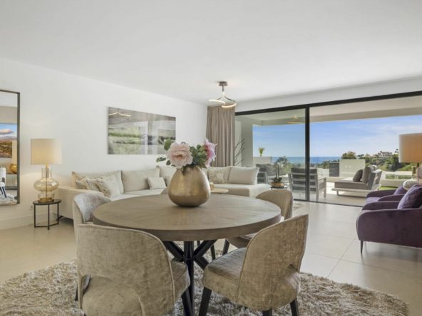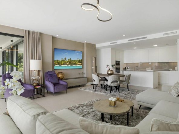 The luxurious 3-bedroom ground floor apartment is located in Aqualina residences with a south-facing orientation and views of the swimming pool and the sea and offers the latest technology and design. High quality and finish make this apartment a whole, using only the best materials. If you are looking for a luxurious, contemporary, modern flat in the heart of one of the best postcodes on the Costa del Sol, this flat is the perfect choice.