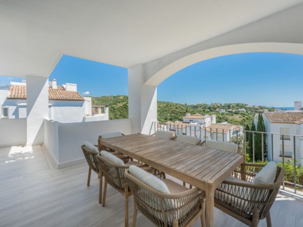 Set within the peaceful residential area of La Quinta in Benahavís, this refreshed middle-floor apartment in Altos de La Quinta offers open sea views and a bright south-east orientation.