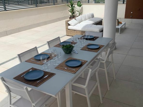 Impressive 100 m² terrace with multiple areas (outdoor lounge, dining, relaxation)