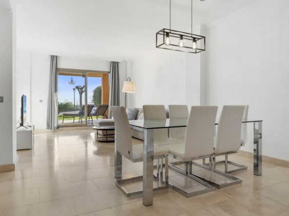 The apartment comprises two spacious bedrooms and two modern bathrooms and is presented to an immaculate standard. Designed for year-round comfort, the property benefits from underfloor heating throughout, while both the master bedroom and the lounge enjoy stunning sea views, creating a bright and relaxing living environment.