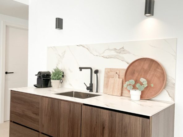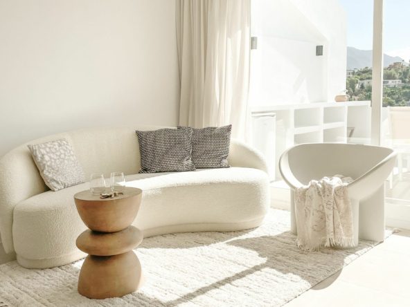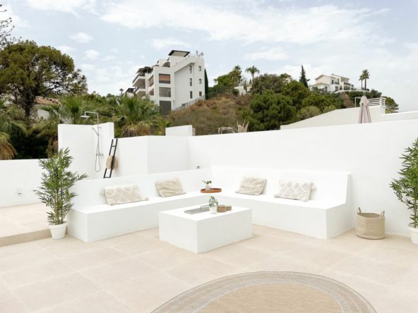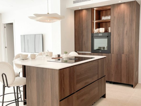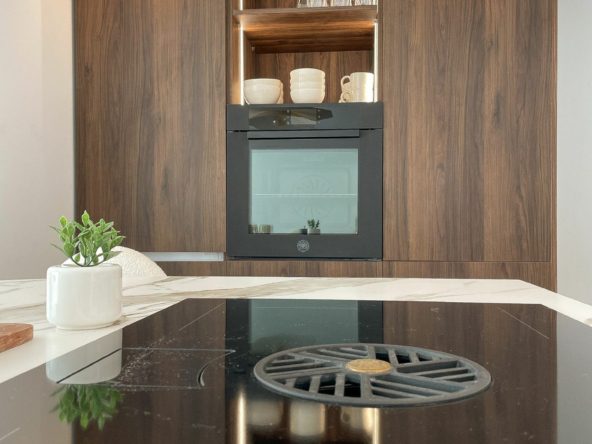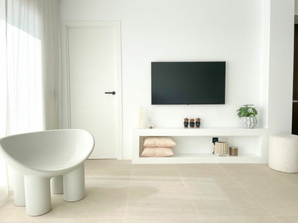 The custom kitchen features a nicely contoured island and top-of-the-line Bertazzoni appliances. The bathroom walls and outdoor areas are covered with 60×60 beige porcelain tiles, which are used throughout the design to provide coherence. The two bathrooms' sleek black features and skylights give them the ideal modern touch, and you can truly live comfortably in the sun here.