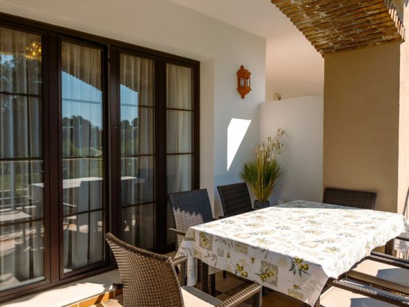 The apartment is bright, spacious, and filled with natural light, featuring sunlit terraces that open toward the greens, offering uninterrupted golf views and a tranquil atmosphere ideal for relaxation or outdoor dining.