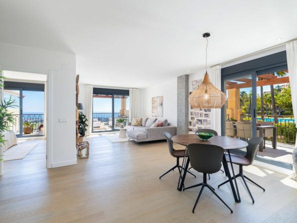 From the living area, you have direct access to a generous 47 m² terrace with stunning panoramic sea views, ideal for outdoor dining, relaxing, and entertaining. In addition, the property boasts a second private south-west-facing terrace, offering even more outdoor living space and breathtaking views not only of the sea but also of the infinity pool, creating a true resort-style ambiance perfect for BBQ evenings and enjoying the Mediterranean climate.