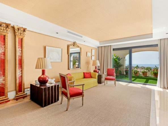 The property features three bright bedrooms, each with its own en-suite bathroom and private terrace, offering a design focused on comfort and elegance. The spacious south-facing living room is flooded with natural light and opens onto an impressive terrace, where you can enjoy panoramic sea views in an intimate and serene atmosphere.