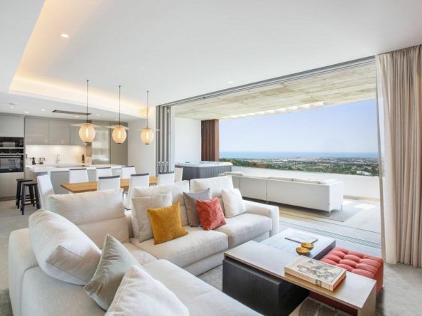 A spectacular one-of-a-kind luxury penthouse immaculately presented in the Quercus phase of Real de la Quinta, a brand new gated community situated hill-top in La Quinta golf. This property oozes style and sophistication with panoramic 180 degree sea, Gibraltar, Africa and mountain views whilst also boasting a south-west orientation.