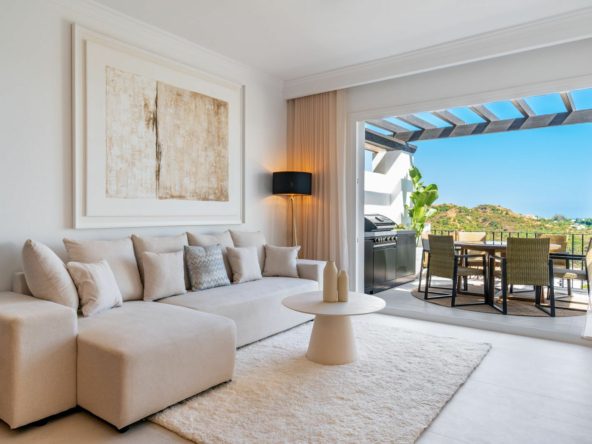 Commanding a privileged position overlooking the rolling landscape of La Quinta and the shimmering Mediterranean beyond, this brand-new, south-facing penthouse is a home defined by its outlook. Here, uninterrupted panoramic sea views form the heart of the living experience, stretching endlessly across the horizon and flooding the interiors with light from sunrise to sunset. The orientation ensures sunshine throughout the day, while the elevated vantage point captures both the dramatic natural scenery of La Quinta and the serene expanse of the sea. From the sitting room and designer kitchen to the master suite, generous terrace and even the bathroom, the panorama is ever-present — a mesmerising backdrop that shifts in colour and tone with the passing hours.