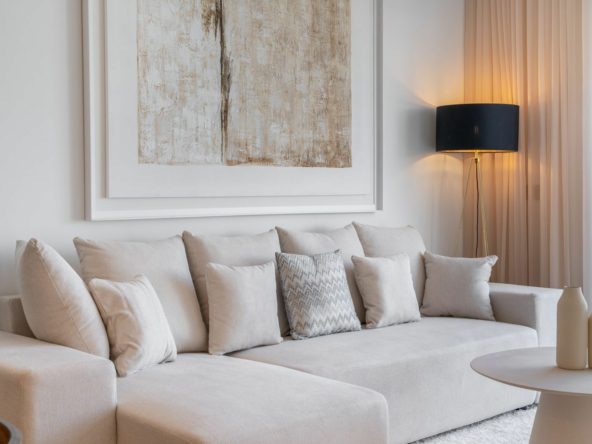 Inside, the residence has been completely reimagined with a bespoke interior design and full furniture installation, marrying contemporary sophistication with a sense of warmth. Commissioned artwork and handmade curtains lend individuality and refinement, while new fitted carpentry provides discreet, seamless storage. The main reception space is anchored by a feature-lit television wall with integrated surround sound, a striking focal point that perfectly balances modern design with everyday comfort.
