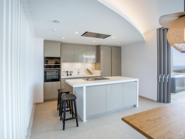 The property comes with 2 large parking spaces underground and a storage room measuring over 17m2. There is then a lift taking you to the penthouse level. The communal swimming pool is just 60 meters away and also features some of the best sea views available on the coastline.