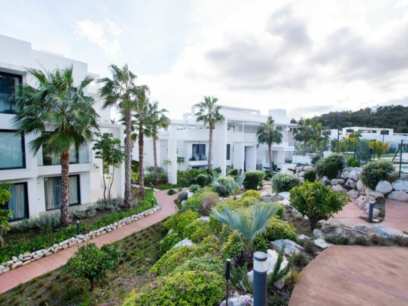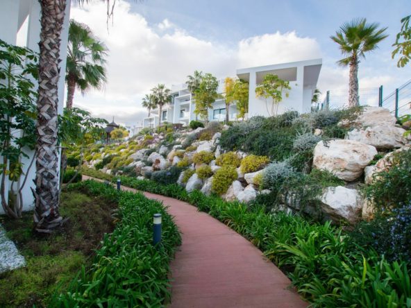 Discover the perfect blend of modern luxury and tranquility in this beautifully renovated 3-bedroom ground-floor apartment located in the prestigious Atalaya Hills. Offering breathtaking views over lush gardens, this stunning corner unit provides exceptional privacy and a seamless indoor-outdoor living experience.