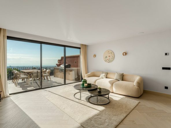 An exceptional duplex penthouse for sale within the charming Monte Halcones urbanization in La Quinta, Benahavís. South-facing and elevated, this residence captures panoramic views that sweep from the Mediterranean coastline to the surrounding mountains, a daily backdrop of natural beauty to enjoy from its expansive terraces. This home brings together contemporary architecture, luxury finishes, and the comfort of modern functionality.