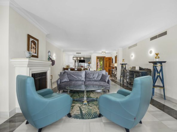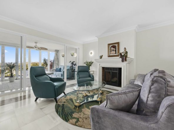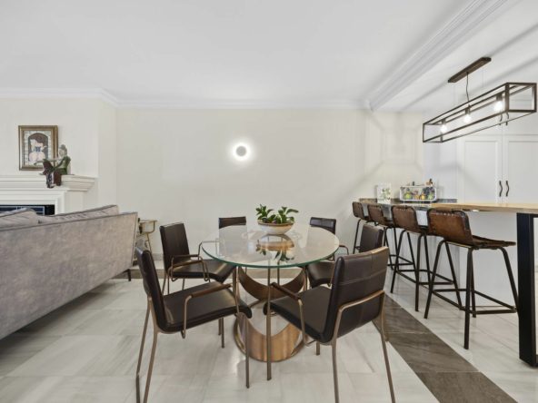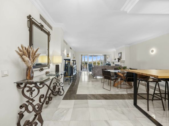 Inside, you'll find two great size bedrooms each with ensuite bathrooms, including one recently refurbished. The light flooded & very spacious living and dining area opens onto a covered terrace with foldable soundproof windows—perfect for enjoying breathtaking sea and Benahavís hill views year-round. Beyond the covered terrace is the open terrace ideal for sunbathing, eating or chilling beneath the stars and lots of space for plants. As the apartment is west-facing position innumeral magical sunsets can be enjoyed here hroughout the year.