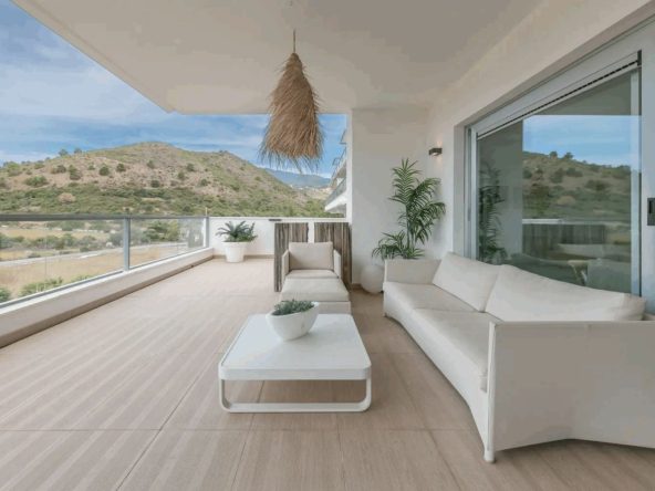This modern luxury apartment offers a unique residential experience on the Costa del Sol. With a magnificent orientation, the property stands out for its impressive views of the mountains, golf course, and partial sea views. It features three spacious bedrooms and two elegant bathrooms, combining contemporary design with maximum comfort. Its privileged setting, just 5 minutes walk to Los Arqueros Country Club Golf, makes it the perfect retreat for those seeking relaxation and adventure.