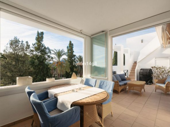 This exceptional frontline golf duplex penthouse for sale in Las Terrazas, Block Junco (La Quinta), offers an impressive blend of space, views and contemporary comfort in one of Benahavís’ most sought-after residential areas. Situated within a well-maintained gated urbanisation known for its peace, security and beautifully kept communal areas, the property enjoys an enviable position overlooking the prestigious La Quinta Golf & Country Club. The area is highly regarded for its natural surroundings, proximity to top-class golf courses and easy access to Marbella, Puerto Banús and all essential amenities.