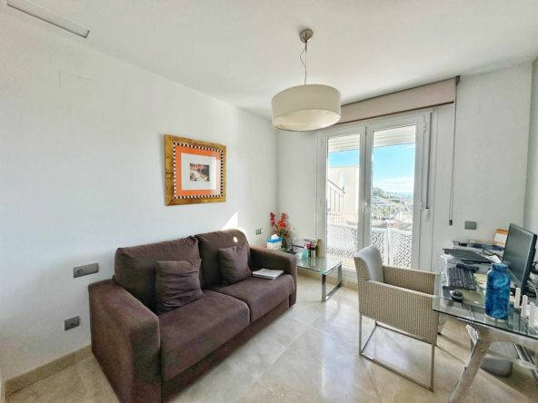 This exceptional fully renovated 2-bedroom, 2-bathroom duplex penthouse is located in the prestigious Los Arqueros urbanization, one of Benahavís’ most sought-after communities. The property features a luxurious master suite with an ensuite bathroom, a second spacious bedroom, and modern, high-quality finishes throughout. With 103 m² of interior space and 60 m² of sun-drenched terraces, this home provides an abundance of natural light and stunning panoramic views of the Mediterranean Sea, the surrounding mountains, and the manicured Los Arqueros golf course. The southeast-facing solarium is perfect for sunbathing or enjoying a quiet morning coffee while soaking in the breathtaking scenery. The open-plan living and dining areas create a seamless indoor-outdoor experience, ideal for entertaining guests or relaxing with family. The fully renovated kitchen combines functionality with elegance, featuring top-quality appliances and sleek design. Located just minutes from Marbella and the Costa del Sol’s finest beaches, restaurants, and international schools, this penthouse offers the perfect combination of luxury, comfort, and convenience. Whether you are seeking a permanent residence, a vacation home, or a high-return investment property, this turnkey duplex represents the ultimate lifestyle by the sea. Key Features: 2 Bedrooms, 2 Bathrooms (1 Ensuite), Duplex layout with fully renovated interiors, 103 m² interior + 60 m² terraces with panoramic views, Southeast orientation for maximum sunlight, Solarium for sunbathing, relaxation, and private gatherings, Prime location in Los Arqueros, Benahavís, near golf courses, Marbella, and the Costa del Sol’s finest amenities.