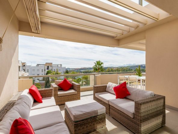 Features a massive south-facing terrace, golf & sea views, spa facilities, and high-end finishes. A turnkey luxury residence on the Costa del Sol.