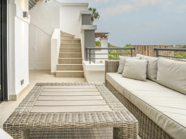 This stylish penthouse for sale in Urb El Lago, within the desirable Los Arqueros community in Benahavís, is offers an exceptional combination of comfort, modern design, and spectacular views. The property has been carefully designed with functionality and elegance in mind, making it ideal for both permanent living and holiday use. With a built area of 168 square meters, including 78m² of refined interior space and a 90m² terrace, the home provides a seamless balance between indoor and outdoor living. The residence features two well-proportioned bedrooms, one of them ensuite bathroom, ensuring convenience and privacy for both residents and visitors.