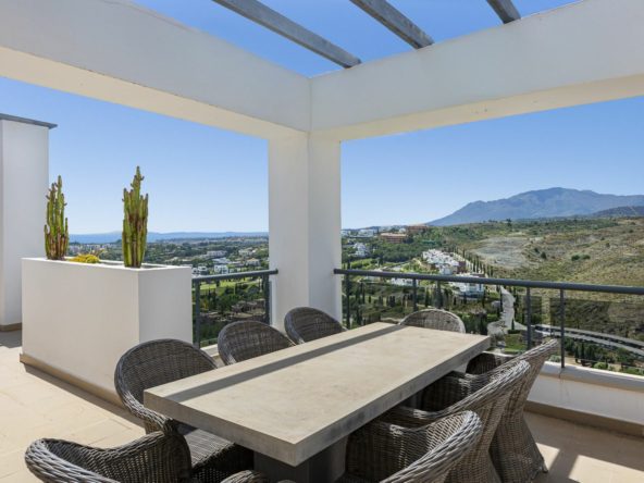 Spectacular luxury penthouse located in Los Flamingos, Benahavís — one of the most exclusive areas on the Costa del Sol. With breathtaking panoramic views stretching from the prestigious Villa Padierna resort to the Mediterranean Sea, Gibraltar, and the African coastline, this property embodies the pinnacle of elegant, contemporary living. Boasting over 100 m² of terraces, it provides the perfect setting to enjoy unforgettable sunrises and sunsets.