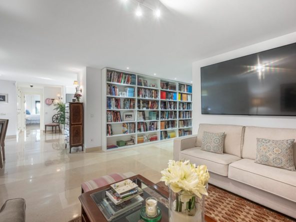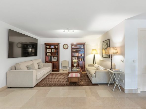 This spacious ground floor apartment with south orientation is located in the prestigious Capanes del Golf development in Benahavís, offering 202 m² of interior space, plus 53 m² of terraces and 72 m2 of storage space attached to the apartment, all on a single level, in a tranquil and privileged setting surrounded by nature and golf courses.
