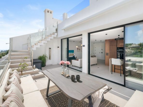 Nestled in a quiet residential area of La Quinta, this exquisitely renovated two-bedroom penthouse blends contemporary elegance with comfort and panoramic scenery. Just moments from the renowned La Quinta Golf Club, along with a 5-star spa and a state-of-the-art fitness center, it delivers an exceptional lifestyle in one of Marbella’s most desirable areas.