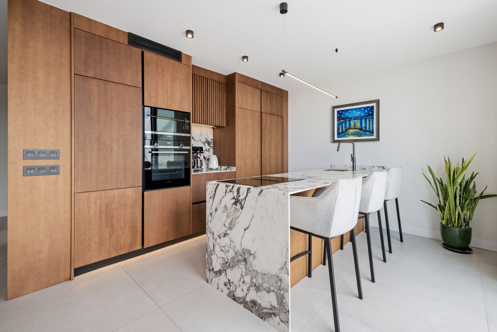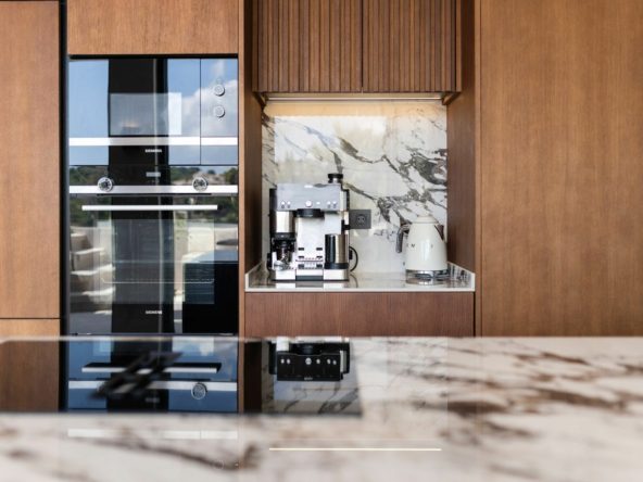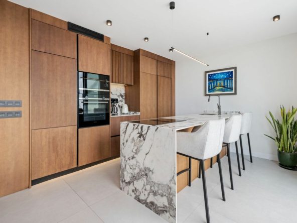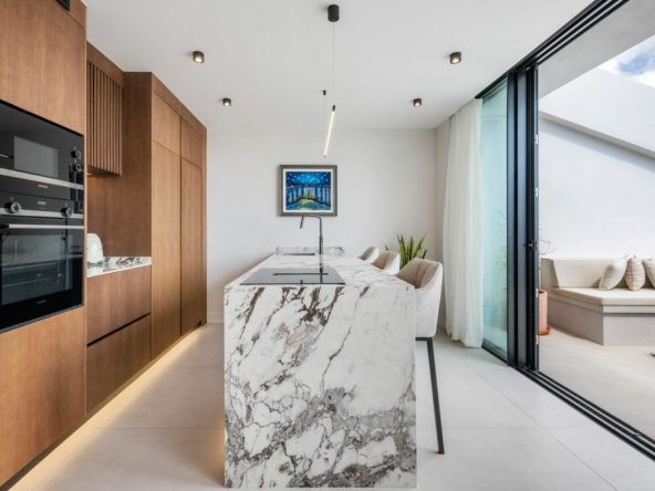 Designed for enjoying the Mediterranean lifestyle, the penthouse features spacious terraces on the main floor as well as a private rooftop retreat. The upper level is equipped with a complete outdoor kitchen, creating the perfect space for entertaining, dining, or unwinding while taking in stunning sea views.