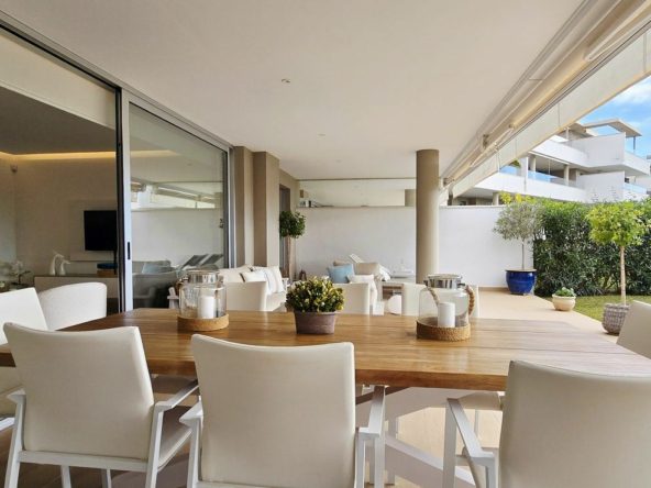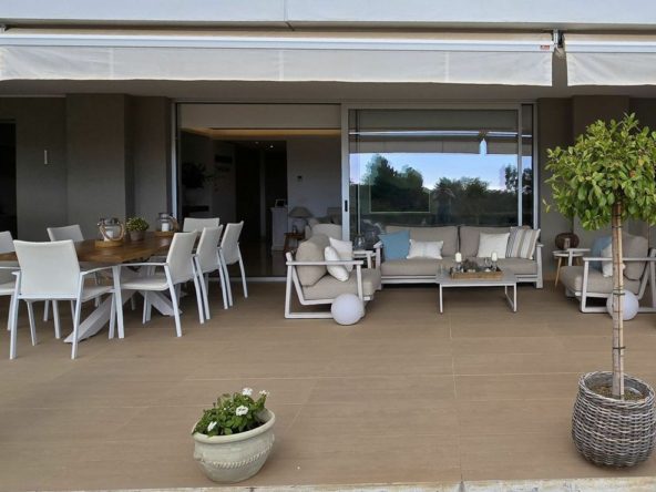 This contemporary 3-bedroom, 2-bathroom ground-floor apartment offers the ideal blend of comfort, style, and outdoor living. With direct access to a large and sunny terrace and a beautiful garden with private use, yet manicured by the gardeners of the community, it’s perfect as a holiday retreat, year-round residence, or high-yield investment.