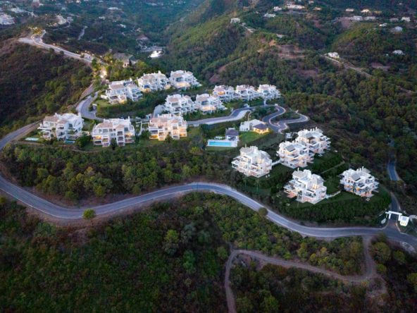 Set on expansive grounds of 158,000m2, the project uses just 6% of the land for construction, ensuring the preservation of the natural landscape. This approach allows residents to enjoy an unspoiled environment and offers magnificent views of the mountains, golf courses, the Mediterranean Sea, Gibraltar, and the African coast.