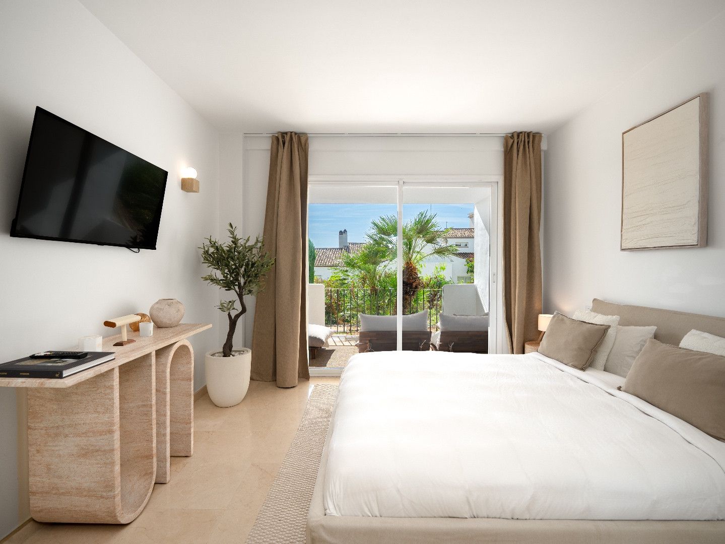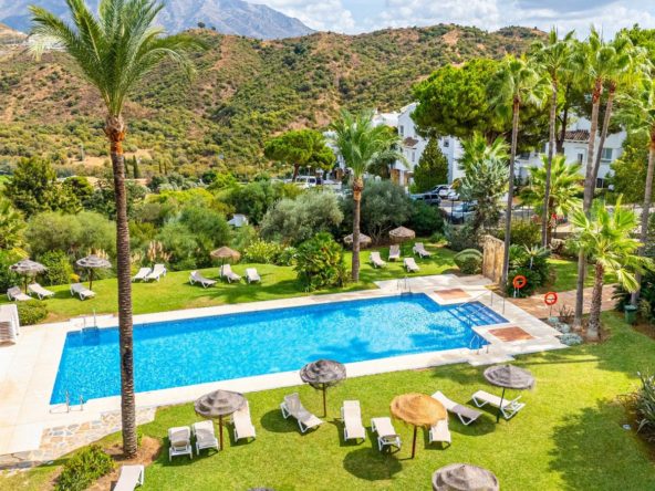 The community provides landscaped gardens, a large pool with sun loungers, and panoramic views across the valley and La Concha. Secure entry and ample parking make this an ideal choice for buyers seeking a luxury apartment in a tranquil setting near Marbella.