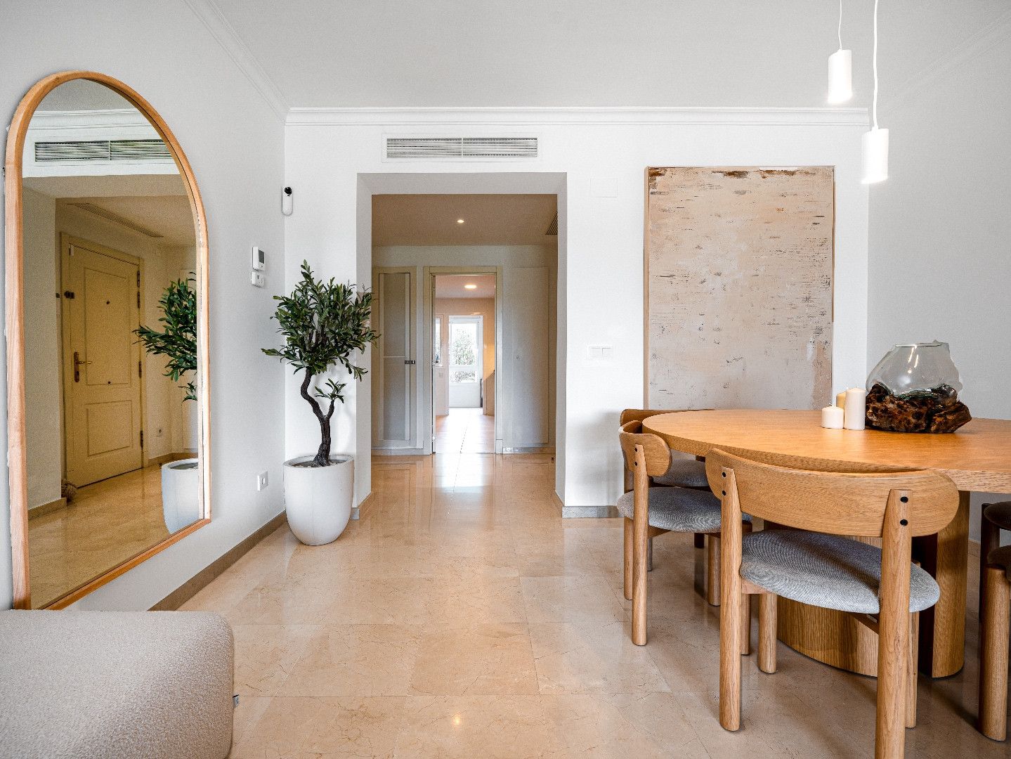 This apartment is a modern two-bedroom, two-bathroom home set in a private gated community in La Quinta. Surrounded by a renowned golf course and mountain views, the property offers peace and privacy while being only a short drive to Marbella. The apartment has bright living spaces and private terraces that look across the lake and the Sierra de las Nieves.