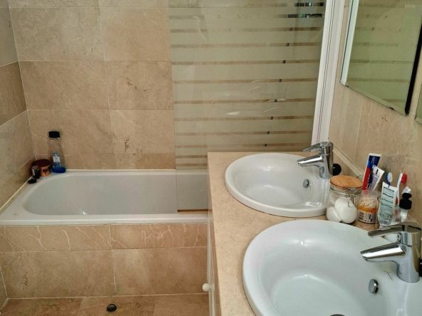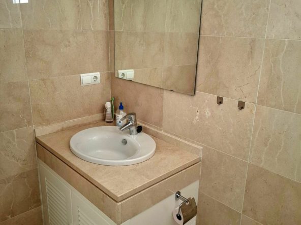 The apartment faces south, ensuring plenty of natural light and a warm, welcoming atmosphere throughout the day. It features two bedrooms and two bathrooms, including a master bedroom with en-suite bathroom and direct access to the spacious terrace. From here, you can enjoy beautiful views and even see a glimpse of the sea – the perfect spot to relax and soak up the Mediterranean sunshine.