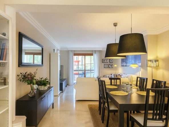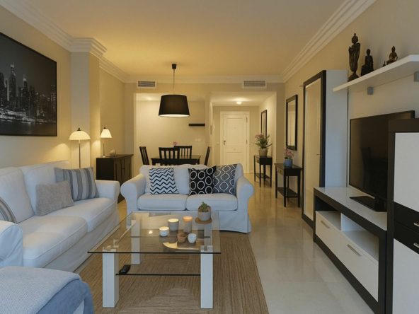 This impressive apartment, is localed in the Gazules del Sol urbanization in the municipality of Benahavis, a gated community with 24-hour security, offers an unparalleled lifestyle. It features three bedrooms, two bathrooms, and a spacious living room that opens onto a large terrace. The separate kitchen with a utility room is perfect for food lovers. The complex offers four outdoor pools, a heated indoor pool, a sauna, and paddle tennis and tennis courts to keep you active. The community gardens are excellently maintained, creating a green and serene environment. It is surrounded by the most prestigious golf courses on the Costa del Sol, such as Guadalmina, Los Flamingos, La Quinta, and Atalaya Country Club. Within walking distance of the beach and all amenities, including restaurants, supermarkets, and several international and prestigious schools on the Costa del Sol, it's perfect for those looking to combine luxury and comfort. It includes one parking spaces and a storage room, as well as marble floors and air conditioning with hot/cold pump for your comfort. Built in 2008, this apartment is located on the first floor, south-facing, and is in excellent condition. Don't miss the opportunity to live in this oasis of tranquility and luxury on the Costa del Sol.