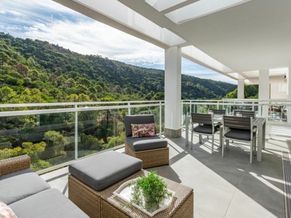 A private terrace extends the living space outdoors, providing an ideal spot for al fresco dining, relaxing, or simply enjoying the pleasant views of the natural surroundings that make Benahavís so special.