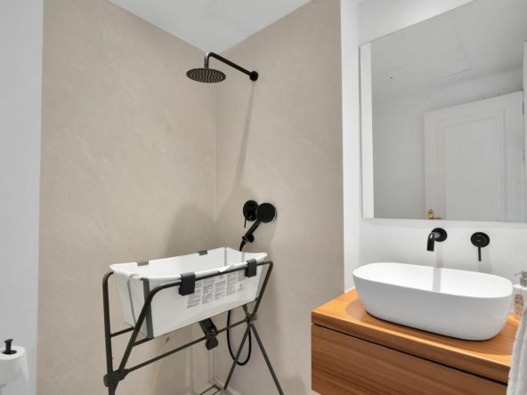 This penthouse has a spacious living room with a fireplace, perfect for enjoying cosy moments. The kitchen is fully equipped and ready for you to prepare your favourite dishes. With two bedrooms, each with its own en-suite bathroom, and an additional toilet, comfort is guaranteed. The two terraces, one measuring 19 m² and the other 30 m², offer ideal spaces to relax and enjoy the Mediterranean climate.