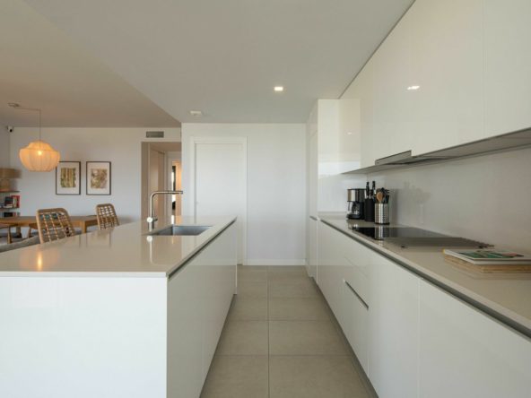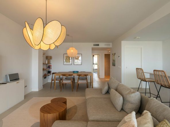The apartment itself offers breathtaking sea views and features 4 bedrooms, 112 m² of living space, and a 43 m² terrace with options for both sun and shade throughout the day, due to its south, southeast, and west-facing orientation. From the west-facing part of the terrace, you can enjoy views of the pool area.