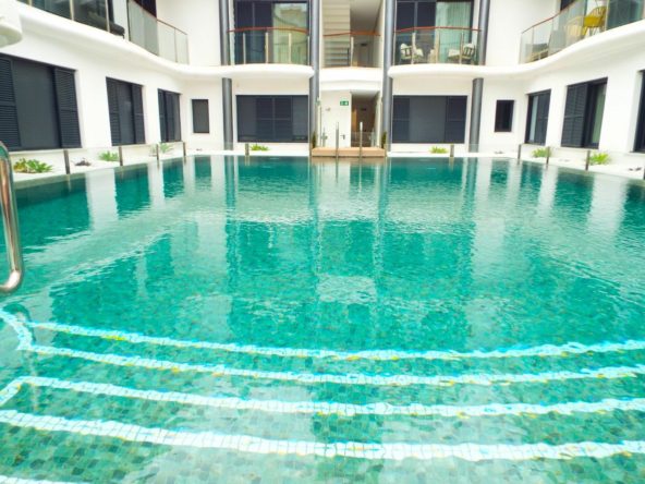 The building offers excellent communal facilities, including a swimming pool and chill-out area, perfect for enjoying the Mediterranean lifestyle in a central urban setting.