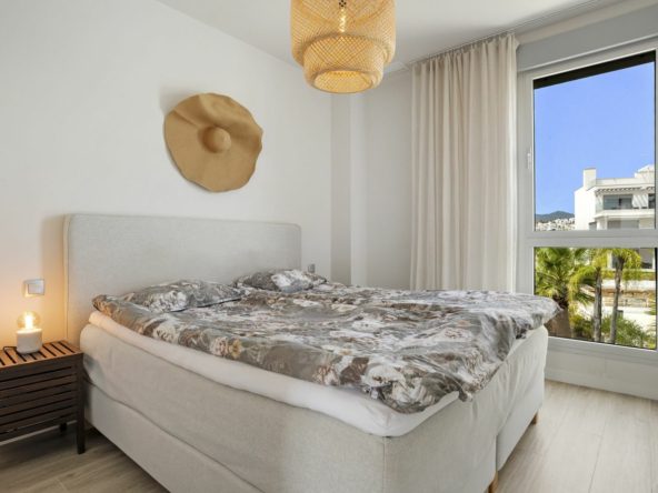 One of the highlights of this home is the private rooftop solarium, an ideal spot for sunbathing, entertaining guests, or simply taking in the panoramic views stretching all the way to Gibraltar. Additional features include air conditioning, fiber optic internet, lift access, underground parking, a storage room, and a security system, all with low community fees.