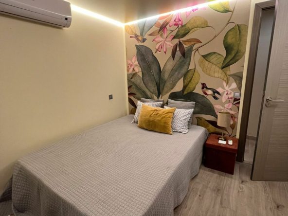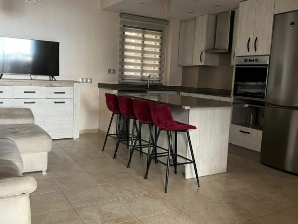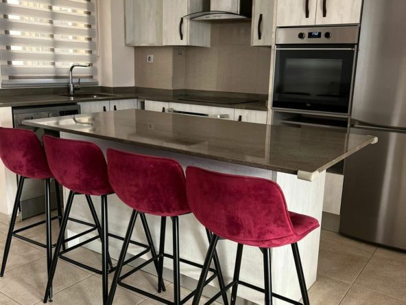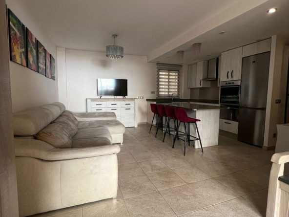 This special apartment has a terrace of about 10m2 for a dining table for a big family just in front the modernised living room with it s open kitchen and dining area', all very light colours and a very nicely refurbished floors all over the apartment.