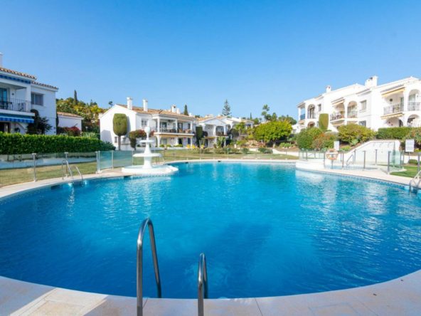 Immaculately maintained tropical palm residents gardens and impressive swimming pool with a cascading Golf waterfall feature designed within the characteristic floral Andalusian gardens and tiled pathways exquisitely decorating the community throughout.