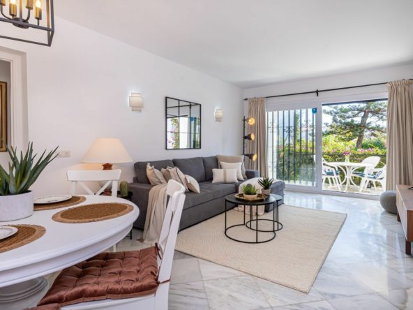 Excellent opportunity to acquire a one level garden apartment with a spacious storage room/Andalucian courtyard in El Paraiso Cortes Del Golf, Benahavis.
