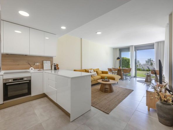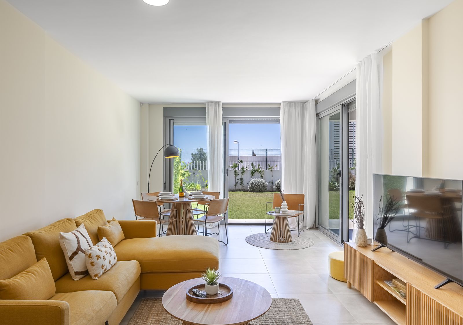Contemporary apartment located in the prestigious Vanian Gardens development, in the New Golden Mile of Estepona. The property offers 80.27 m² of usable space, plus 101 m² of private garden — perfect for enjoying spacious and comfortable outdoor areas all year round.