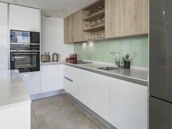 The two well-appointed bedrooms serve as retreats of comfort, each boasting ample space and plush interiors. The master suite is a sanctuary of relaxation, featuring an en-suite bathroom and access to a private terrace where you can unwind while enjoying the pleasant Mediterranean breeze.
