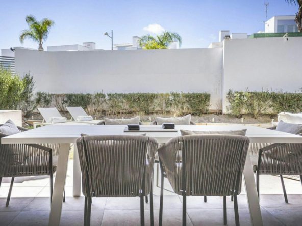 Welcome to the epitome of modern living at The Residences Cancelada, where luxury and comfort seamlessly blend with the allure of the Spanish coast. This exclusive ground floor apartment, nestled on the largest plot within the urbanization, offers a unique and unparalleled residential experience.