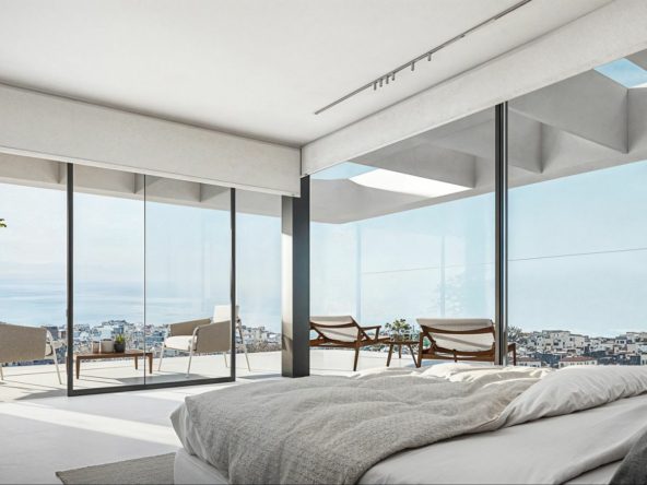This development offers 36 beautiful single-storey homes with large rooms, the option of 2 or 3 bedrooms, 2 bathrooms and large terraces with beautiful panoramic views. They have a fully equipped kitchen, air conditioning, heating and double glazing. The ground floor properties have a garden and private swimming pool, and the penthouses have a solarium and swimming pool. The communal facilities include an indoor and outdoor swimming pool, gym, spa, co-working and cinema room.