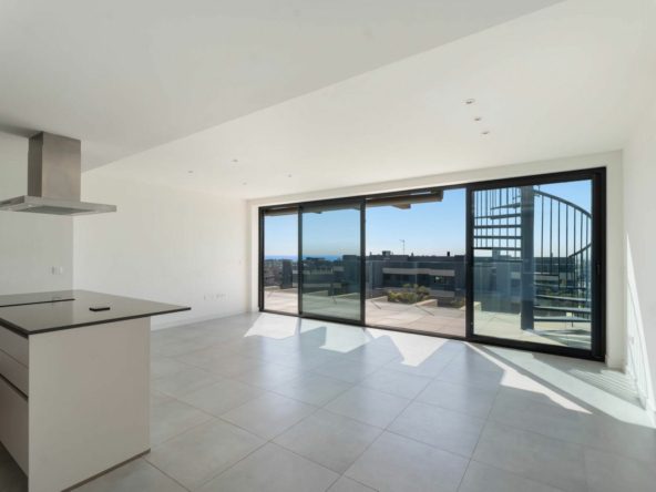 The main terrace, measuring around 31 m², extends the living space outdoors and is directly accessible from the interior living area. A spiral staircase leads to the private solarium of nearly 70 m², where open sea views create a calm setting for outdoor use throughout the year .
