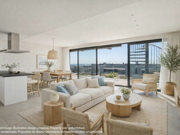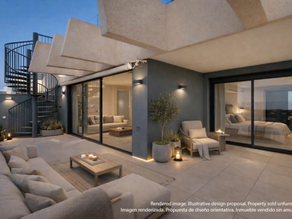 Penthouse El Oasis is a contemporary three-bedroom penthouse located on the New Golden Mile, in the Selwo area. Positioned within a modern residential complex, this property combines clean architectural lines with functional indoor and outdoor living spaces, designed for comfort and privacy.